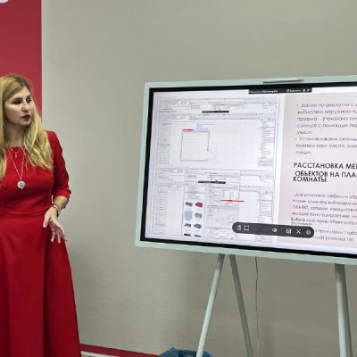 Наталья Юрьевна провела со студентами первоначальную настройку программы, чтобы все чертежи и планы соответствовали требованиям, затем перешли к проектированию стен, разместили на плане окна и двери, разобрав особенности их построения.